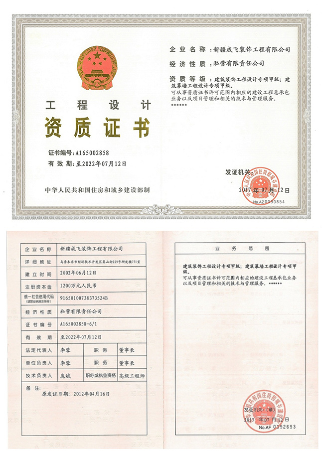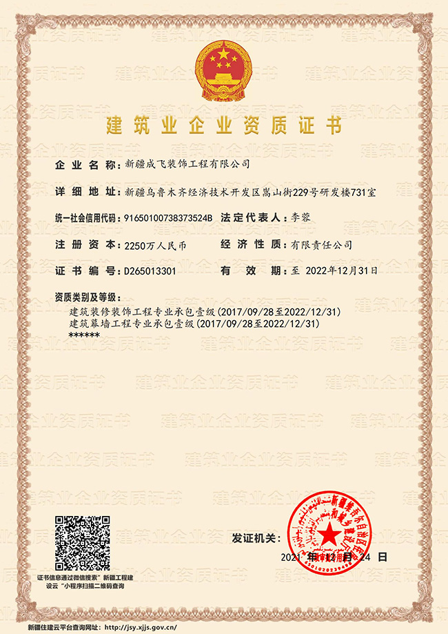 新疆成飛建設(shè)工程有限公司是一家以專注于裝飾工程領(lǐng)域,堅持穩(wěn)健經(jīng)營、持續(xù)創(chuàng)新、開放合作的原則,在星級賓館、高檔寫字樓、大型商場、高級餐館、娛樂設(shè)施、車站、銀行等大型室內(nèi)外建筑工程(包括各類玻璃幕墻、石材幕墻、鋁板幕墻、鋼結(jié)構(gòu)室內(nèi)裝飾等工程)裝飾裝修...查看更多